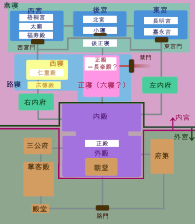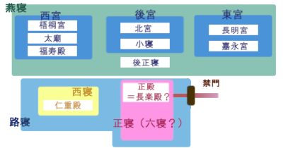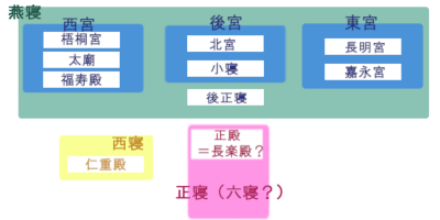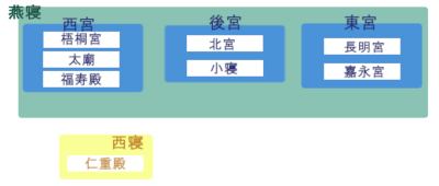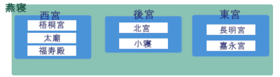 後宮、東宮、西宮を併せて燕寝あるいは後宮と呼ぶ。